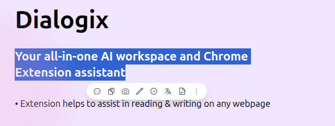 When you select text, a small Dialogix popup appears near your selection. This popup shows your most-used actions.